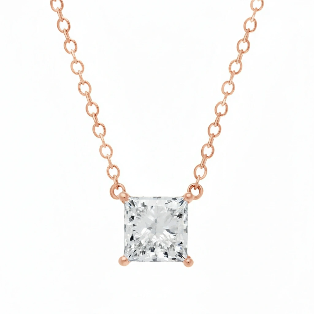 1 CT Princess Lab Grown Diamond Solitaire Floating Necklace