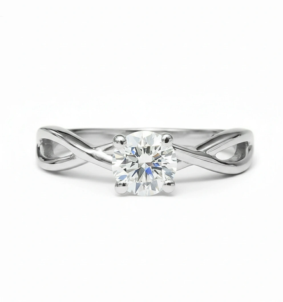 Round Twisted Vine Band Solitaire Engagement Ring now available with our Lab Grown Diamonds which are tested to ensure perfect clarity with an optimal price.
