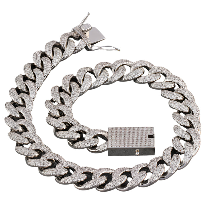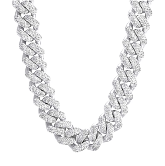 שרשרת קובנית מיאמי 15 מ"מ זהב לבן 18K