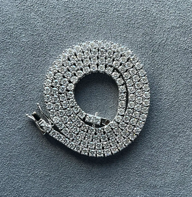 שרשרת טניס פרמיום בגודל 3מ"מ עגול זהב לבן 18K